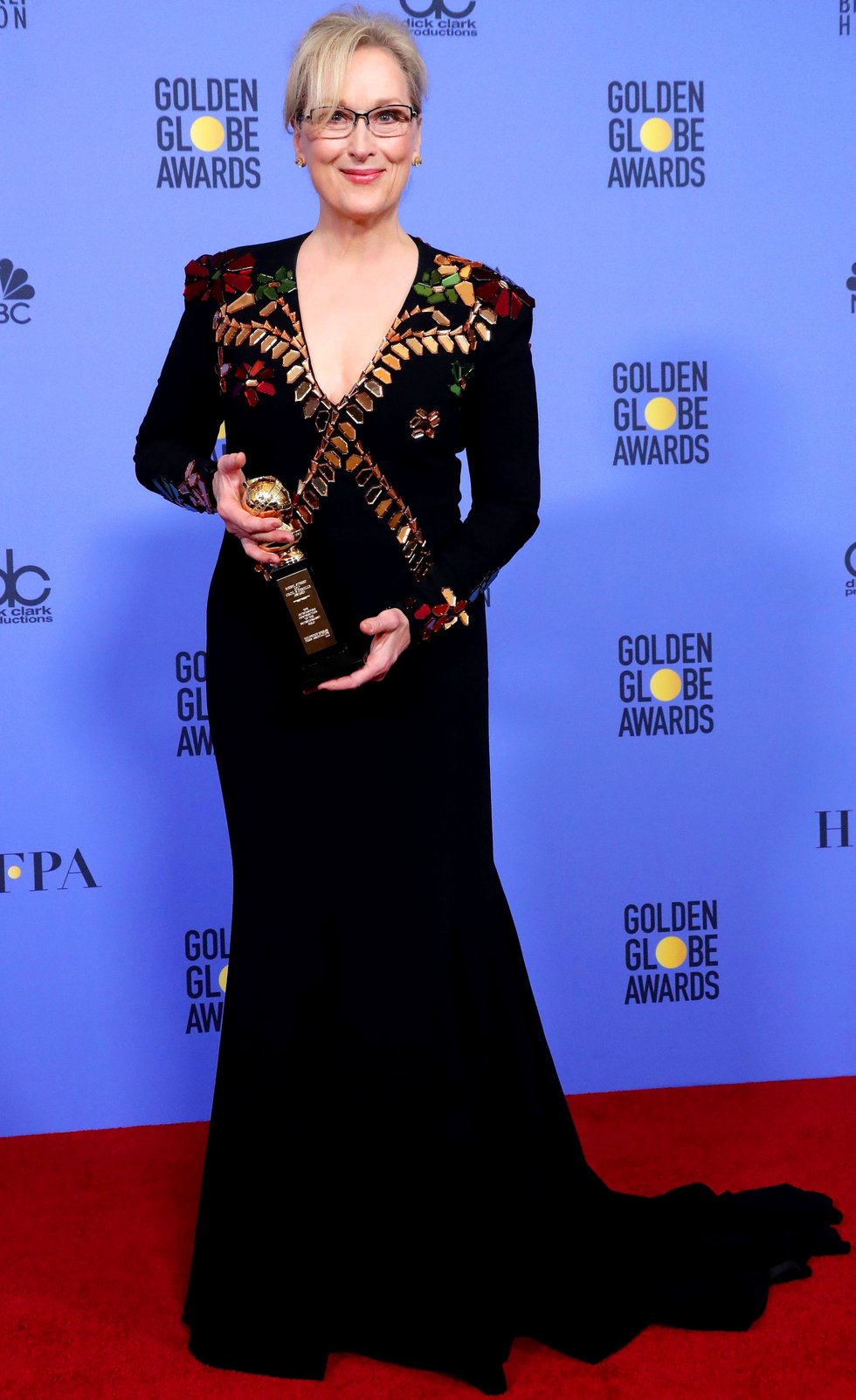 HOT 10. Puede que el vestido de Meryl Streep no sea de los mejores, pero solo por su discurso al recibir su premio se merece estar en esta lista.