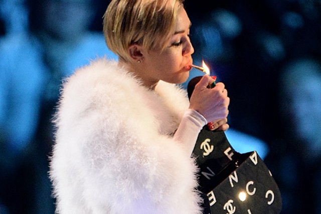 La primera actuación de la cantante fue un fragmento de su tema We Can´t Stop”, donde apareció con bastante más ropa de la que nos tiene acostumbrados, acompañada por una bailarina enfundada en látex negro. Posteriormente, cantó 'Wreckling Ball', y lo hizo de lo más normal para ser ella. Pero cuando parecía que la gala estaba llegando a su fin, y que las declaraciones del rapero Eminem al recoger su premio afirmando a las cámaras que amaba la anfetamina serían el escándalo de la noche, la joven cantante decidió ir más allá y al recoger su premio, metió la mano en su clutch Chanel, se sacó un porro y se lo fumó en pleno escenario. Y es que está claro que si alguien tiene que ser el protagonista de algún escándalo, Miley se va a llevar siempre el primer puesto.