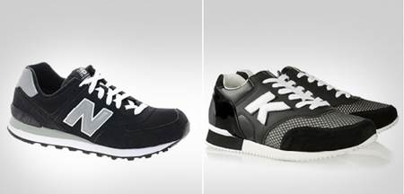 Es cierto que los blancos y negros pueden que sean pura coincidencia, ya que sabemos que son los típicos colores que suele usar siempre Karl, pero va mas allá, ya que la ‘K’ de las zapatillas tienen el mismo tamaño, la misma fuente y cosida a la zapatilla del mismo modo. El modelo M574NN es el que más parecido tiene con las del Káiser.