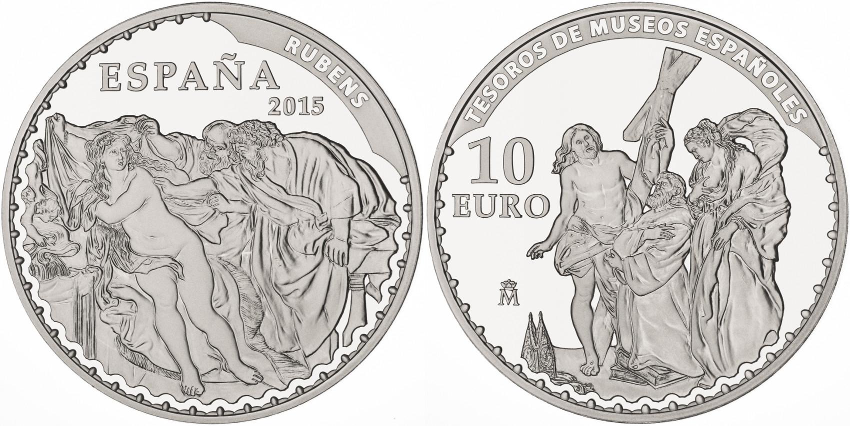 Todas las monedas, excepto la que tiene el facial de cincuenta euros, cuentan con dos obras de autores como Rubens, Madrazo y Kuntz, Tintoretto o Goya; mientras que la moneda de plata con el facial de cincuenta euros tiene una obra de Arcimboldo en el frente y Velázquez en el reverso.