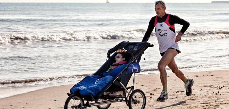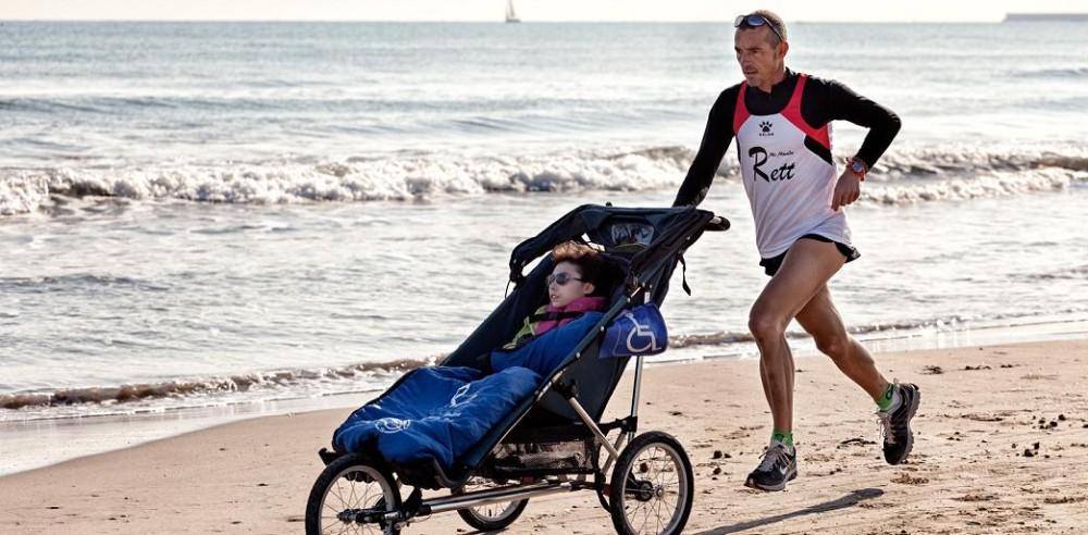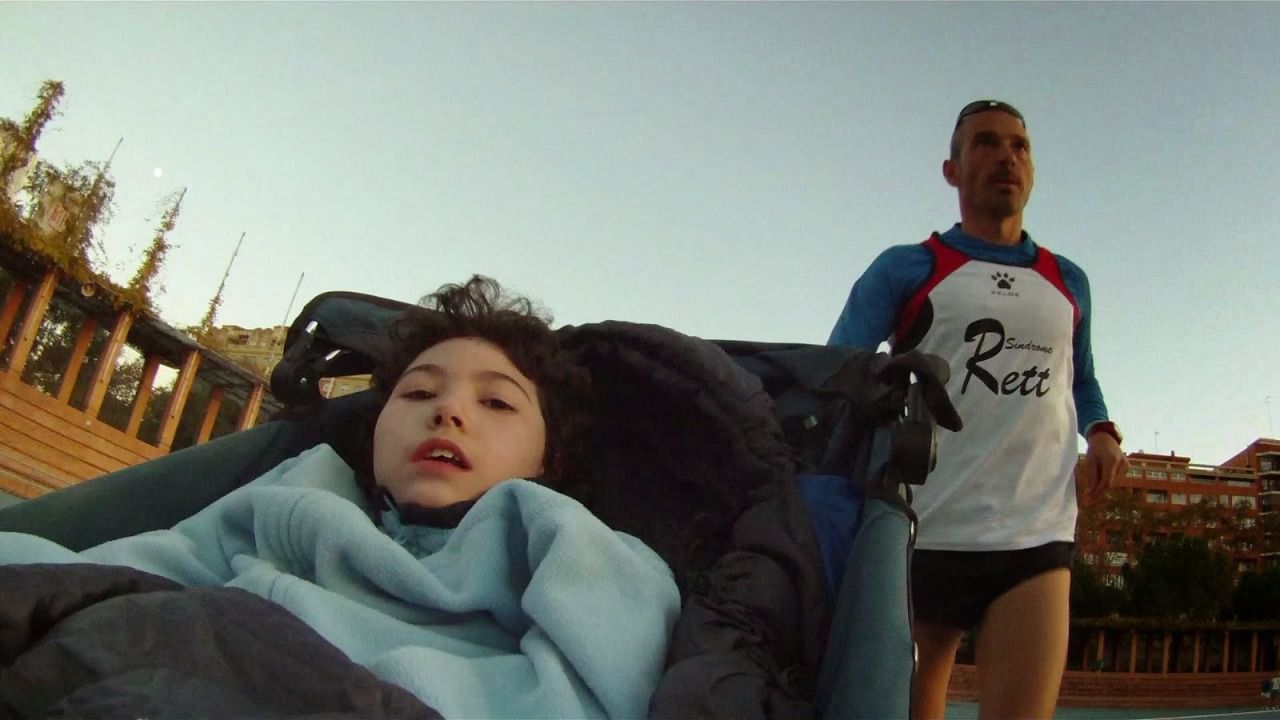 Línea de meta narra la historia de JOSELE, un padre que corre maratones empujando el carro de MARIA su hija diagnosticada de una enfermedad rara llamada “Síndrome de Rett”.